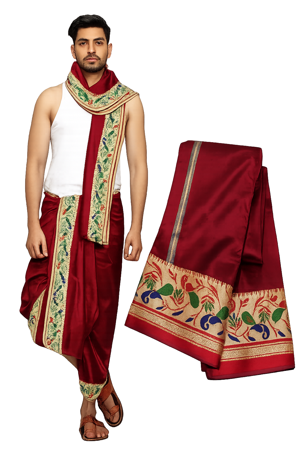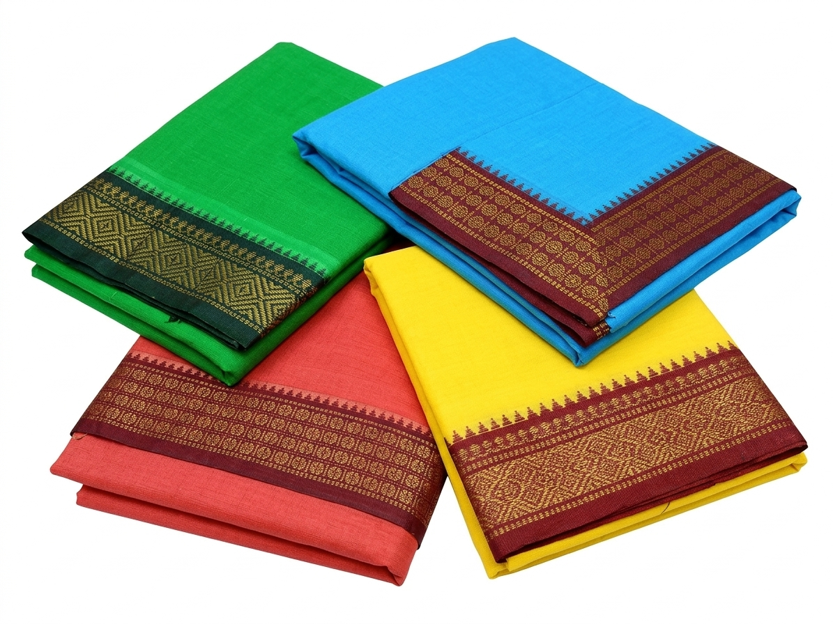 Our collection includes premium cotton dhotis and woven fabrics known for their lightweight feel, breathability, and traditional elegance.